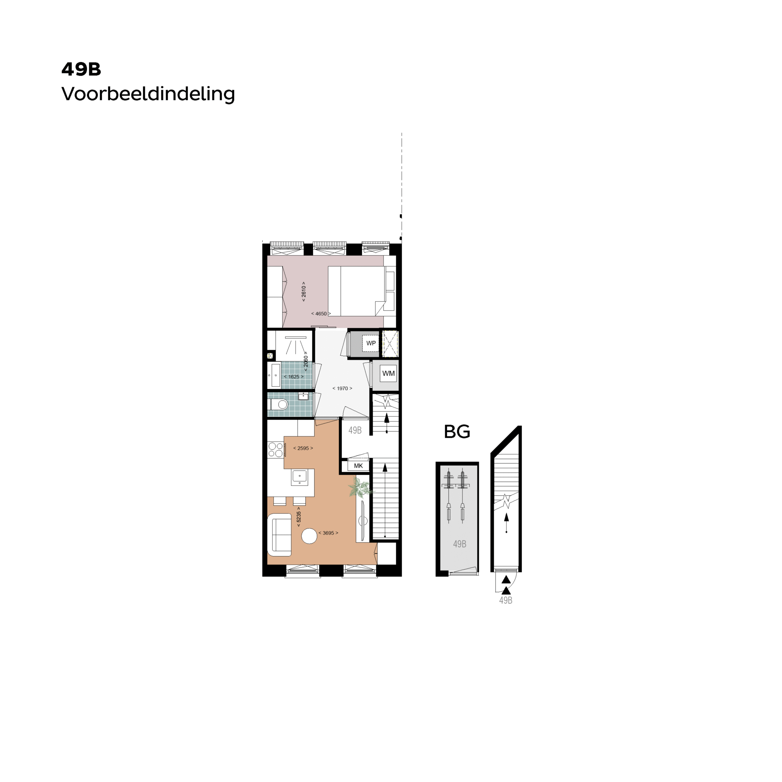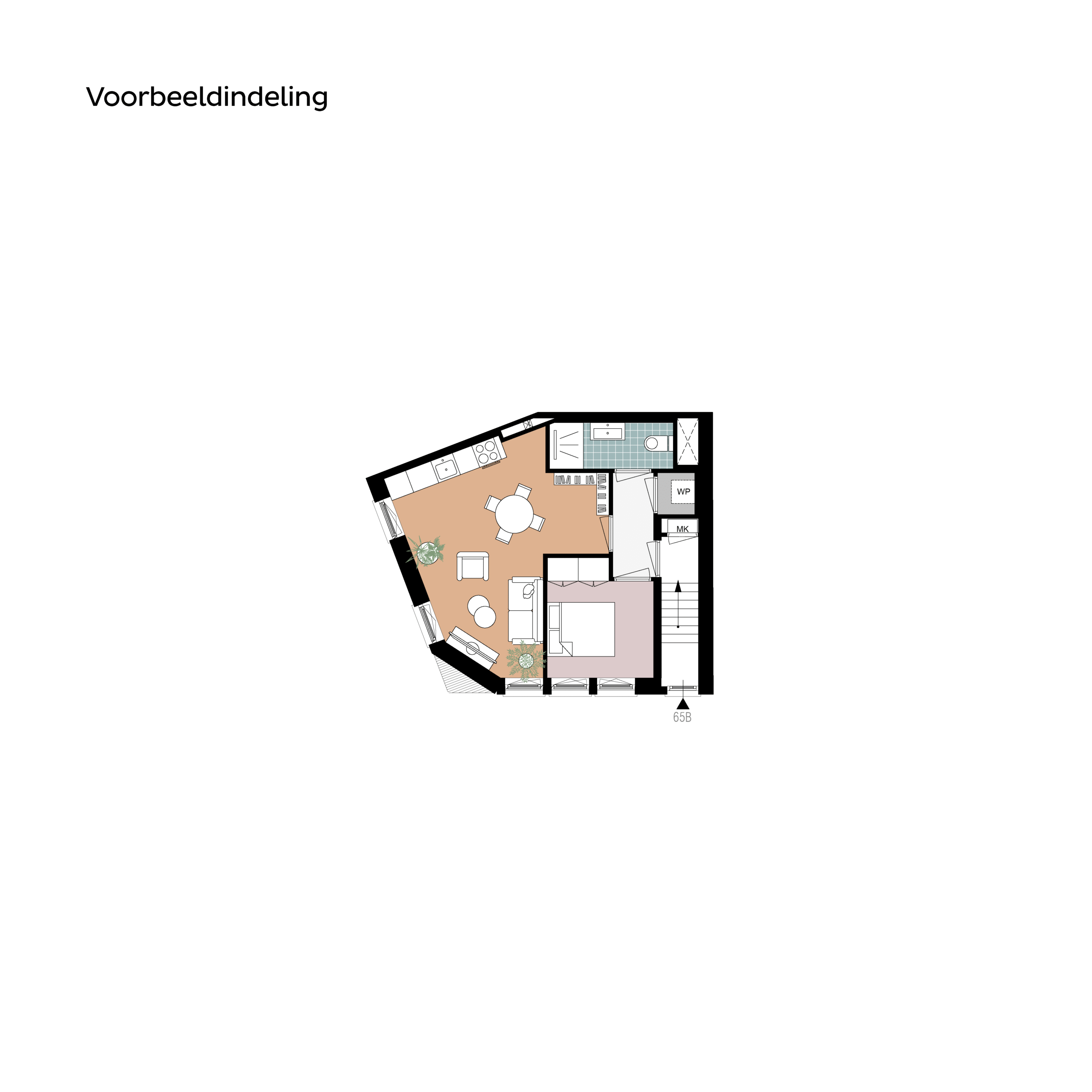 Welke woning je ook kiest, je stemt de indeling helemaal af op jouw behoeften, met een knusse woonkamer met keuken, een comfortabele slaapkamer, en een praktische hal met ruimte voor opbergruimte.